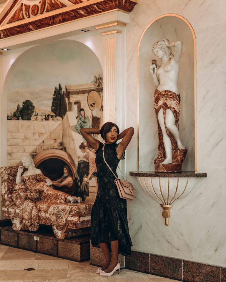 To show how much I’m looking forward to Samio’s party, I’ve gone ahead and put together a party look from Amazon Fashion which will allow me to enjoy my night. Staying true to my timeless style, I went for this classic high neck black dress which has enough room for me to wiggle and dance the night away. To add a touch of colour, I’ve accessorised with pink handbag and shoes which I’m sure Samio will appreciate as it matches her velvet couch.